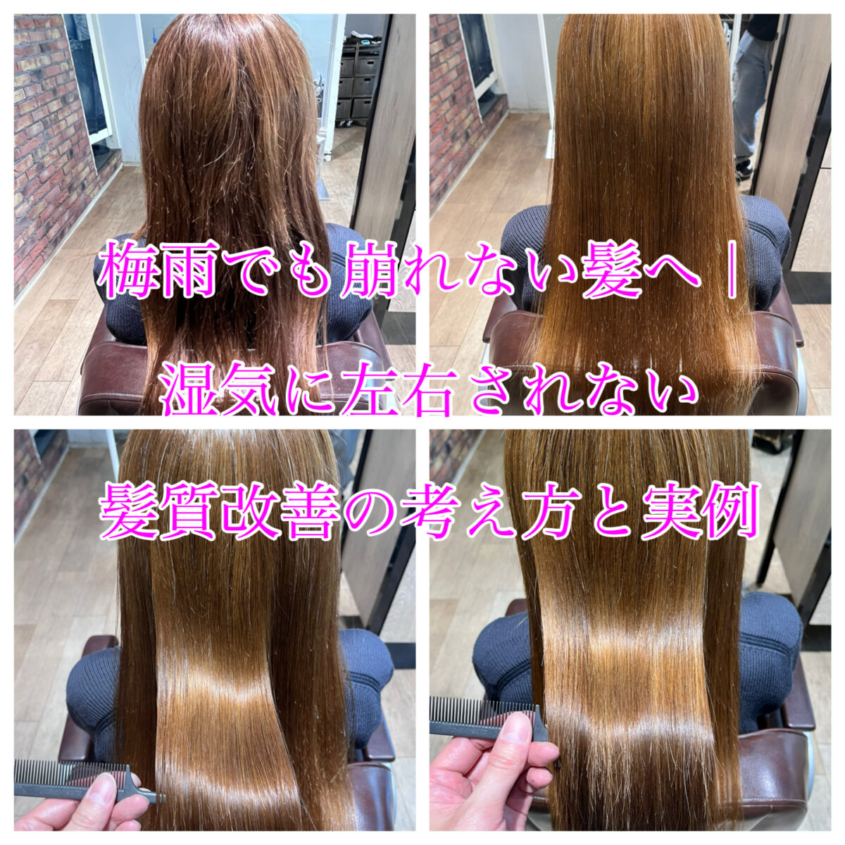 今回は、湿気の影響を受けやすい髪質に対して、どのようにアプローチすれば安定した状態を作れるのか。実際のお客様の事例をもとに、髪質改善の考え方と変化をお伝えしていきます。